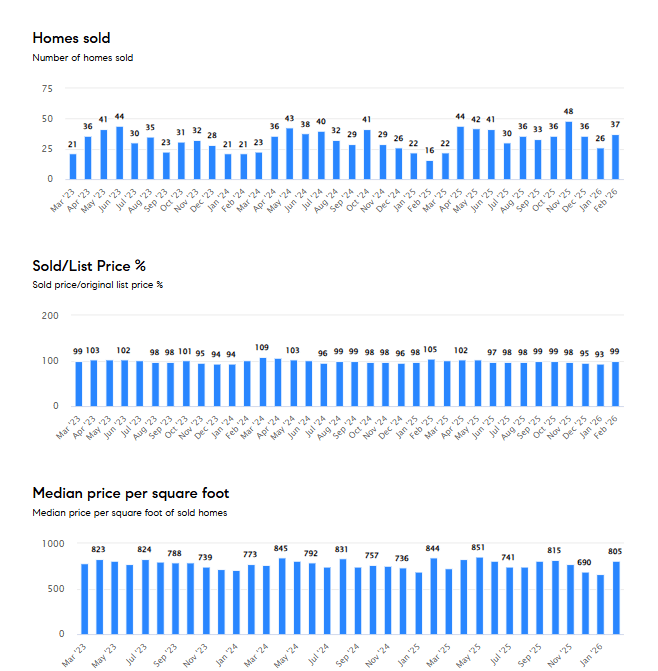 The February 2026 real estate market report for San Rafael, California. The following are the key points: #1. The number of homes sold in February was 39 up from January’s 25 sold homes. Please be aware that January and February are the months historically with the fewest sales, but this February we saw a significant increase from 2024 and 2025, almost double the sales. We also saw at least three homes sell recently that last year sat for over 90 days without selling. The market is definitely hot right now. Also worth noting, agents are still commenting on how they have buyers, but there is not enough inventory. I currently have 5 sets of buyers looking at different price points and locations. #2 The median days on the market was 22 days. #3. The original list price to final sales price ratio was 99%, it has been below 100% for nine months now. I think we will see March hit 100% or better #4. The median sold price per square foot in February 2026 was $805, in January of 2026 it was $662, in December of 2025 $690, and $767 in November of 2025. The market is moving upwards again.
